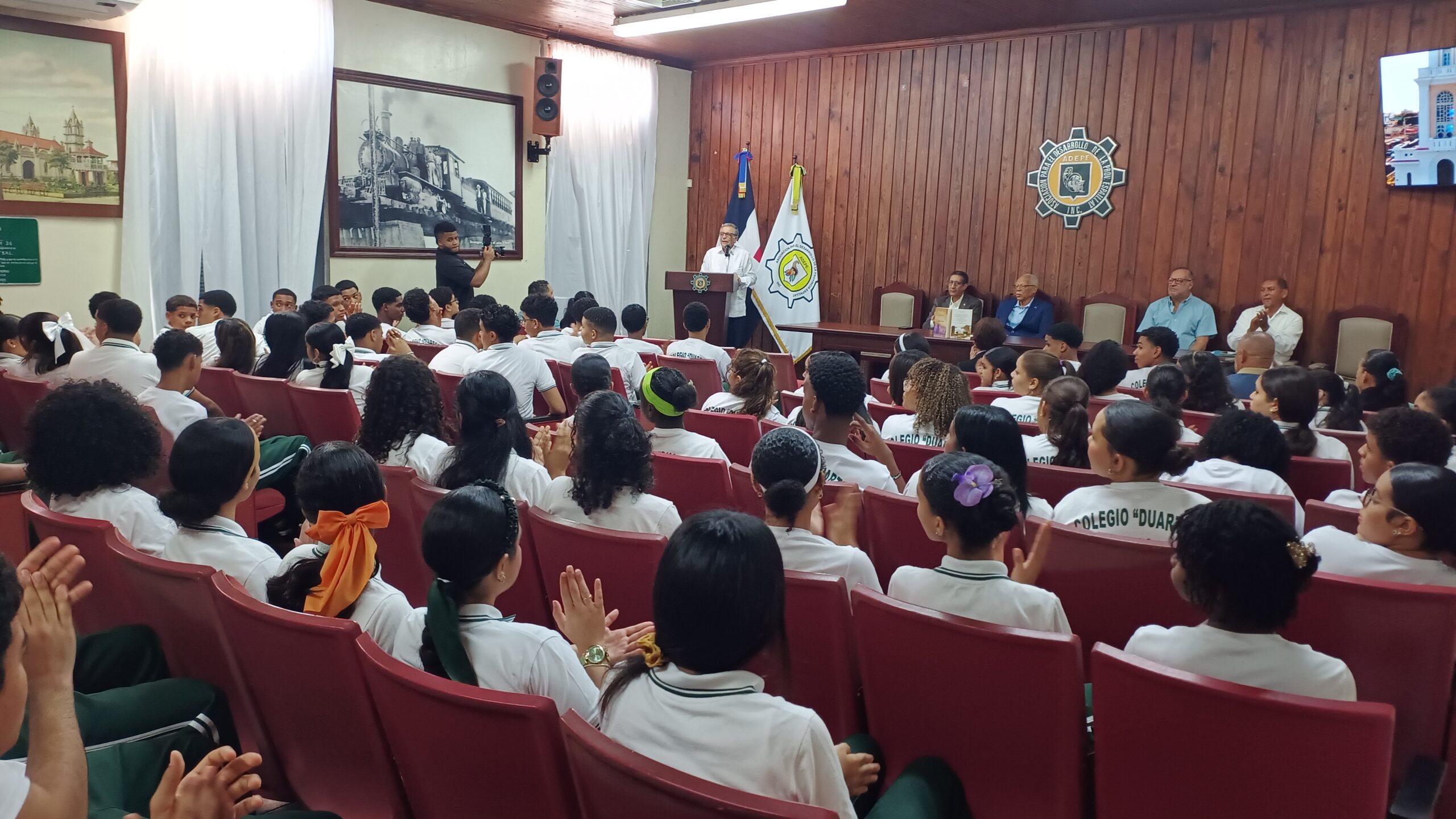 En el acto participaron miembros de ADEPE, profesores y estudiantes del Colegio Duarte de Moca, quienes mostraron gran interés por los temas tratados y valoraron la importancia de conocer las raíces constitucionales del país como parte de la formación ciudadana y académica.