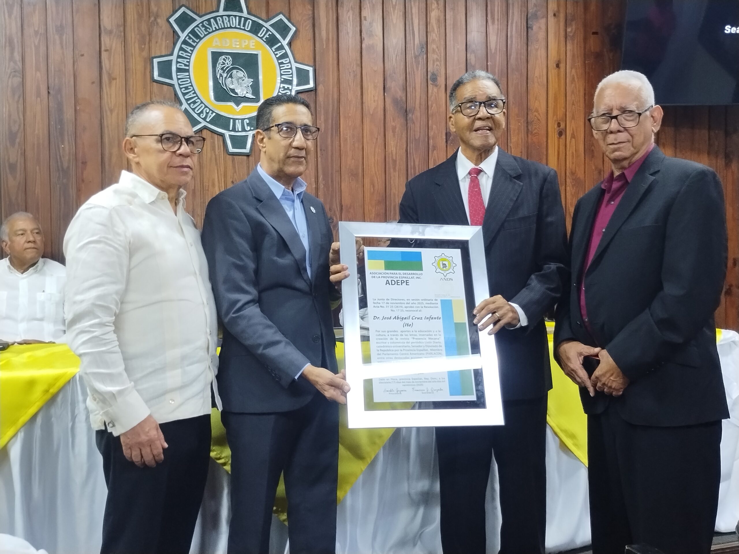Tambien Amable Guzmán, presidente de la Asociación para el Desarrollo de la provincia Espaillat (ADEPE), en la conmemoración de su 50 aniversario de la fundación de la entidad de desarrollo, hizo entrega de una resolución de reconocimiento al doctor Cruz Infante.